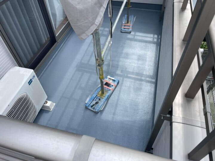 ベランダ床については、防水機能は問題なくトップコートのみ塗装しました。